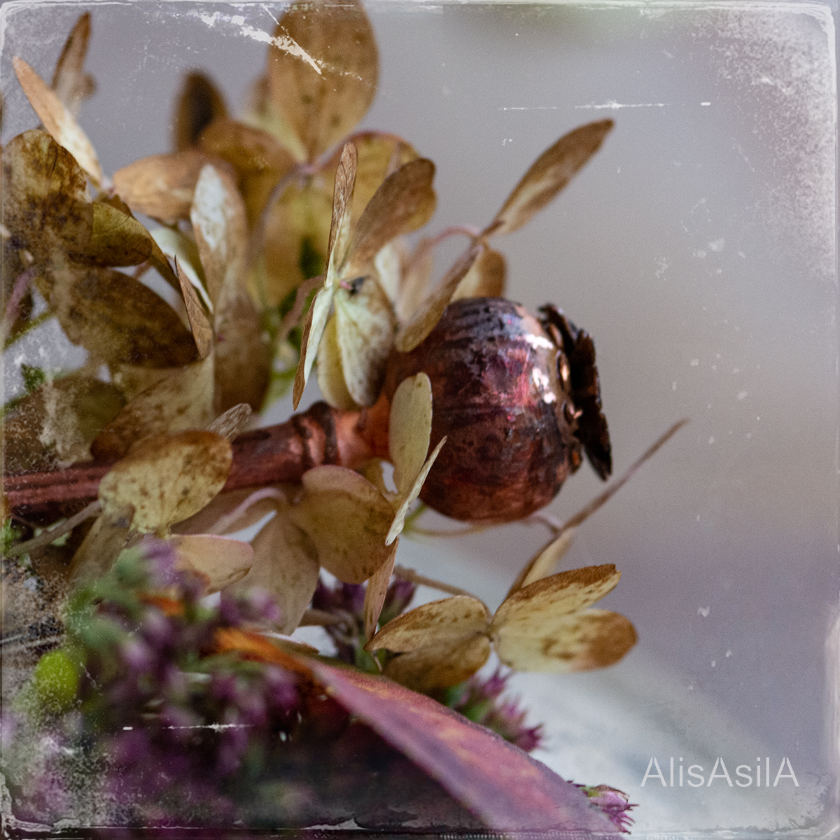 This content is the image: Collection "Mekona Goddess” hairpin of copper electroforming poppies “Pin of Mecona”