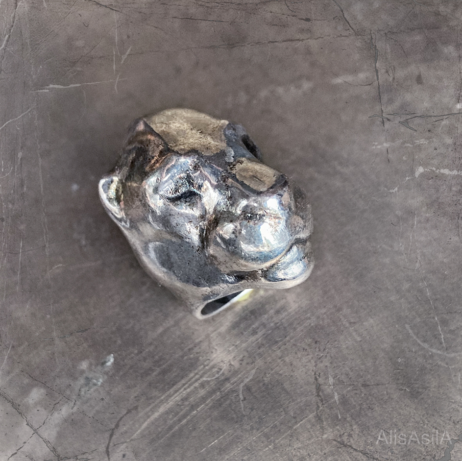 It is worn irregularly, on the joint of the second and third phalanges of the finger. Inside the ring there is a cavity in which you can put a stone for healing purposes or as a charm.
